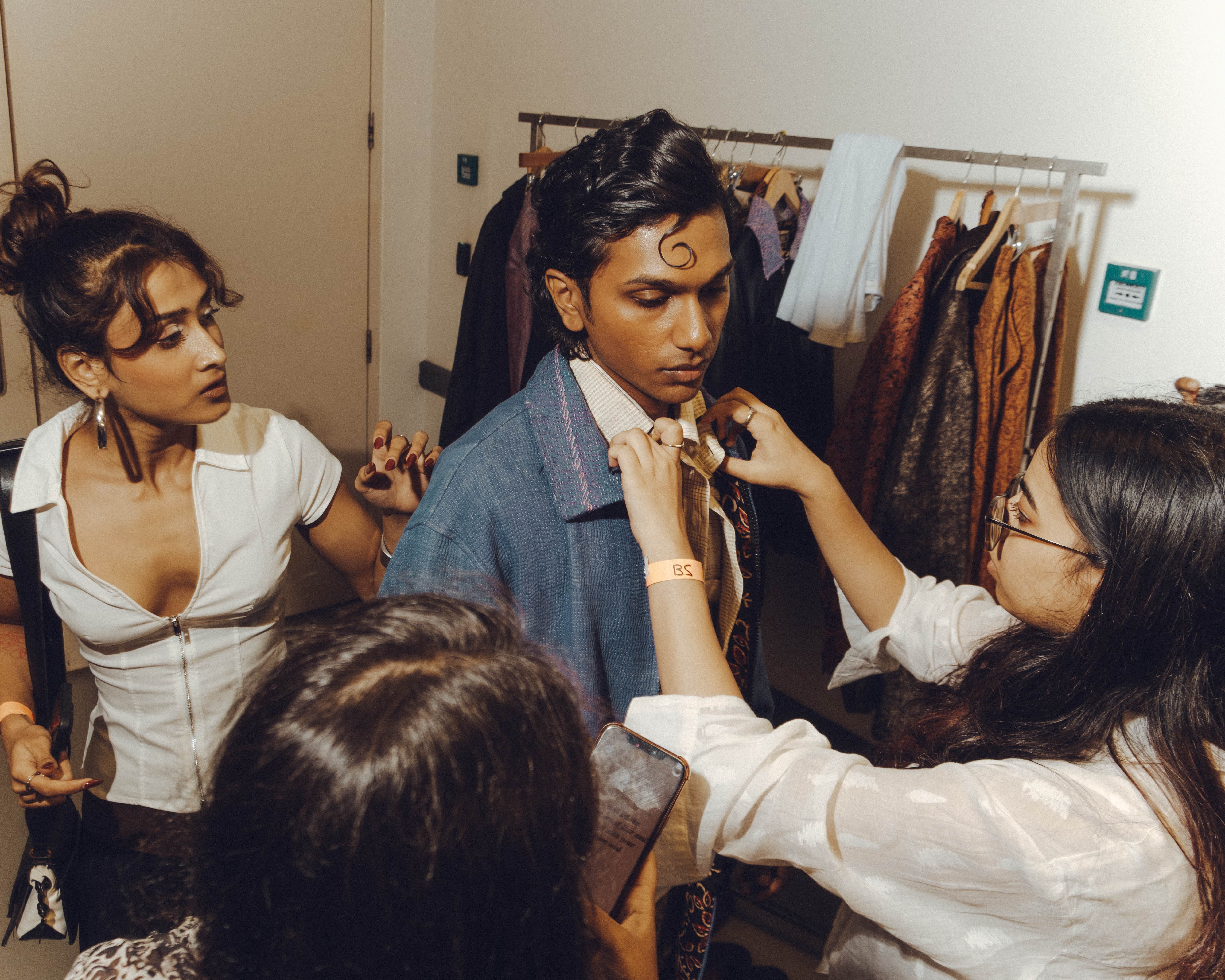 A collection that gestures toward Kerouac’s restless road, filtered through the textures of handwoven India.